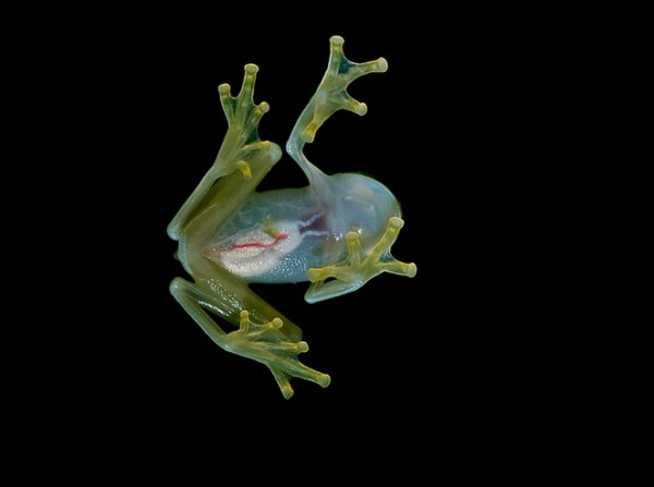 La prácticamente transparente rana de cristal es un animal realmente inquietante, su diseño es sacado de alguna historia de fantasía, pero es real. Todo su organismo se puede ver a través de su piel, como si la naturaleza pretendiera dejarnos con la boca abierto como expresión de sorpresa.
